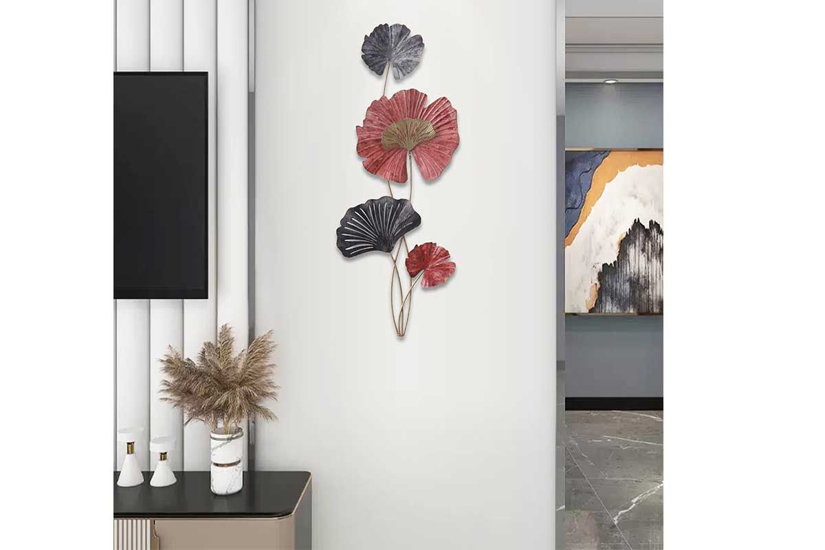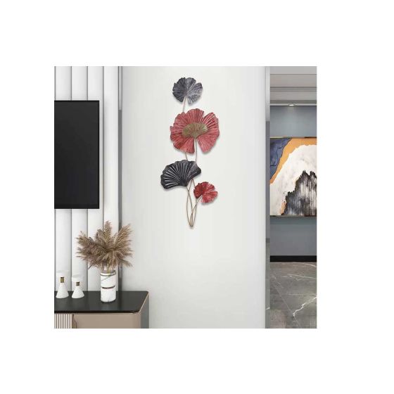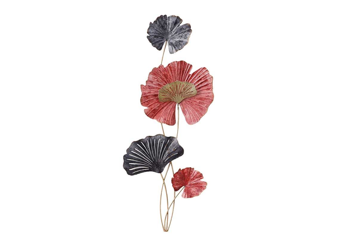 DM1111 - DECORATION MURALE METAL FEUILLES GINKGO ROUGES/GRISES - BEAUX-ARTS