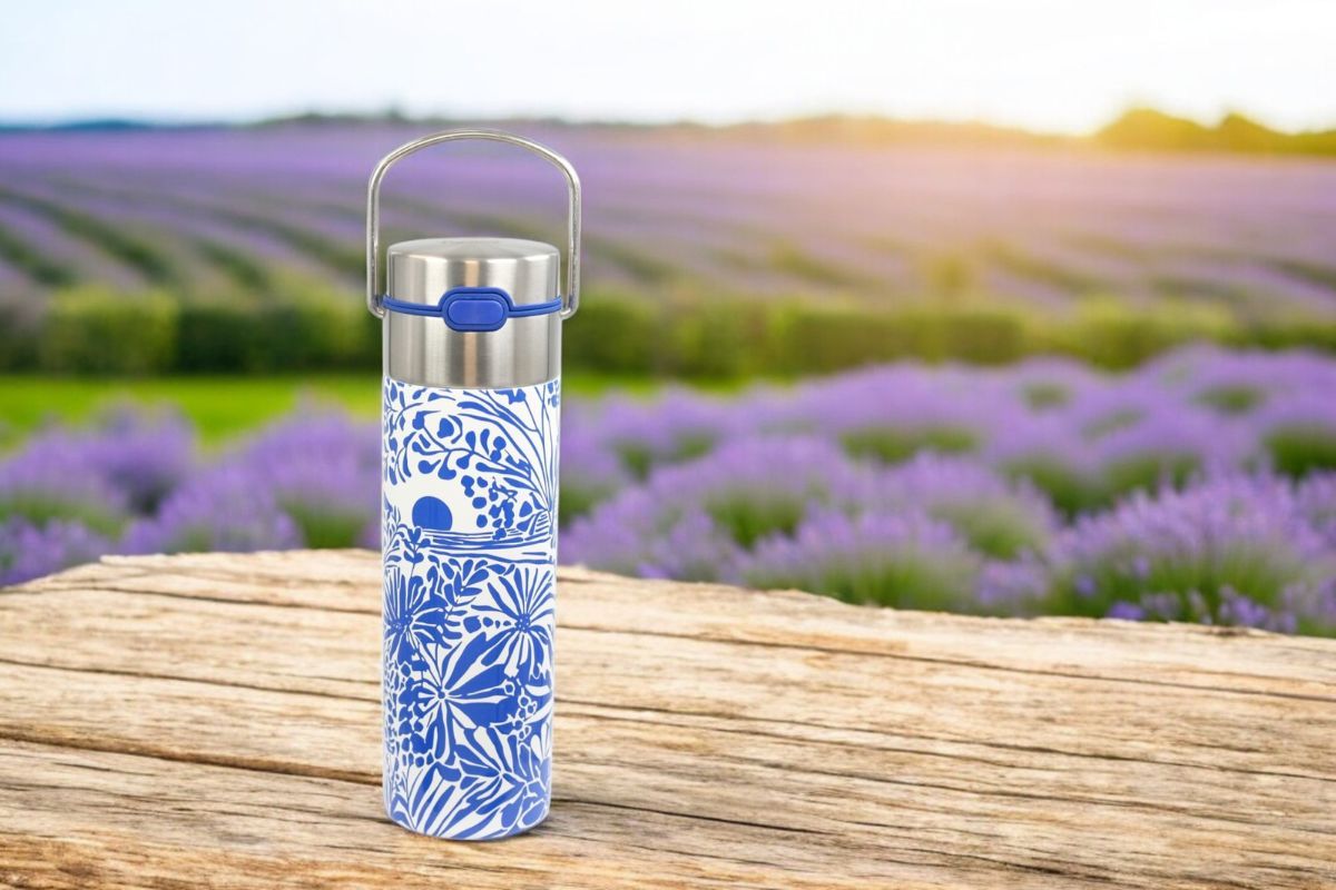 EA11028 - BOUTEILLE INOX 500ML INFUSEUR INCLUS BLEU CÔTE D'AZUR LEEZA - EIGENART