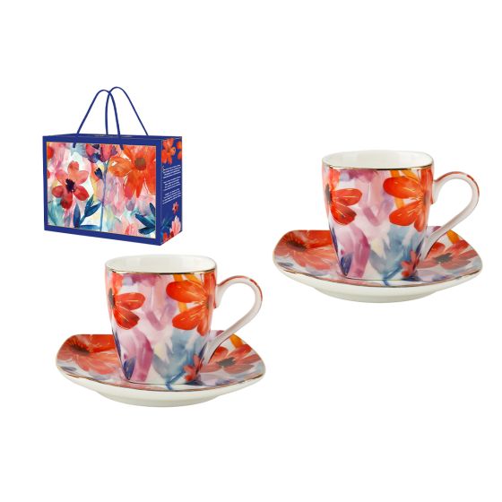 AU6110 - Set of 2 Espresso Cups 130 ml + Small Plate Aquare - AQUARELLA