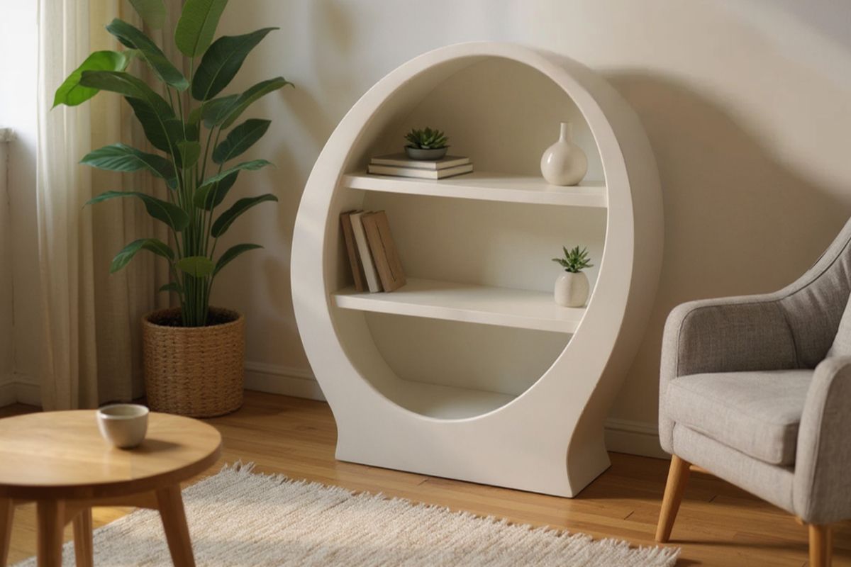 EGG-SHAPED SHELF WITH CEMENT-EFFECT LINES