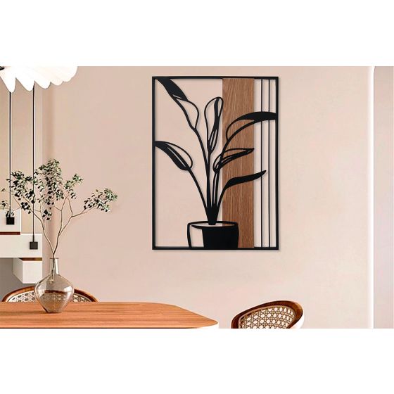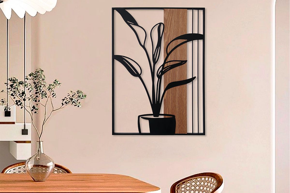 DECORATION MURALE PLANTE VERTE BOIS/METAL