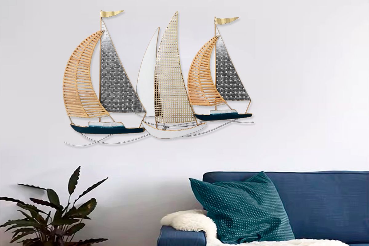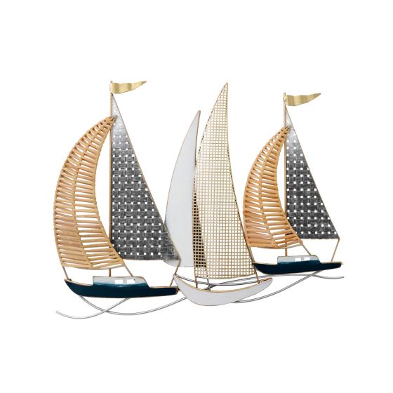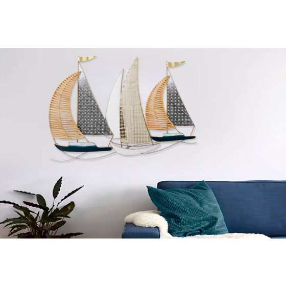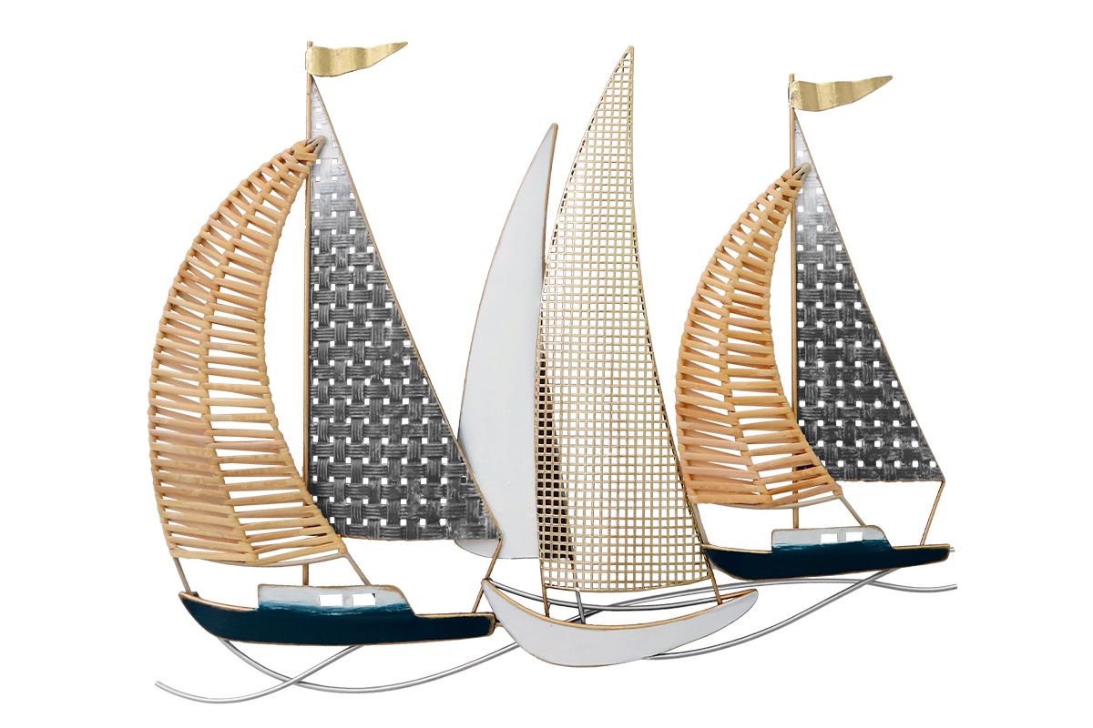 DECORATION MURALE METAL VOILIERS GRIS FIBRES NATURELLES