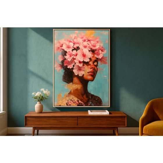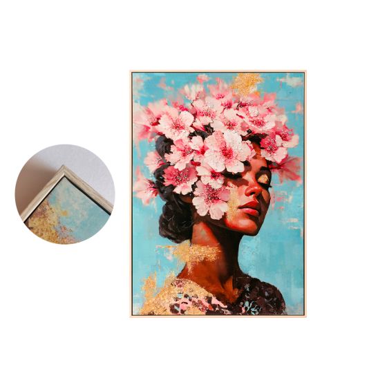 TABLEAU FEMME FLEURS AVEC CRISTAUX