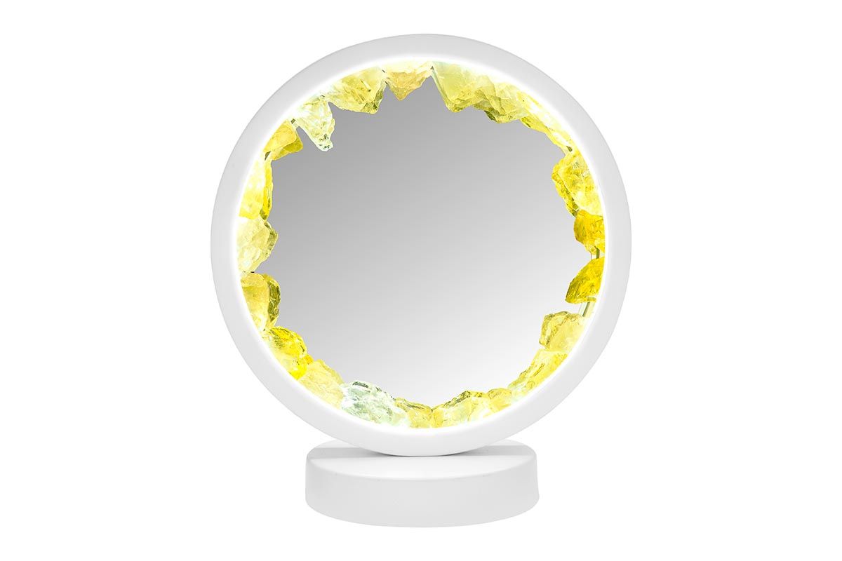 Lampe pierres naturelles Angelight - support blanc - Citrine - miroir plexiglass - diamètre 18cm