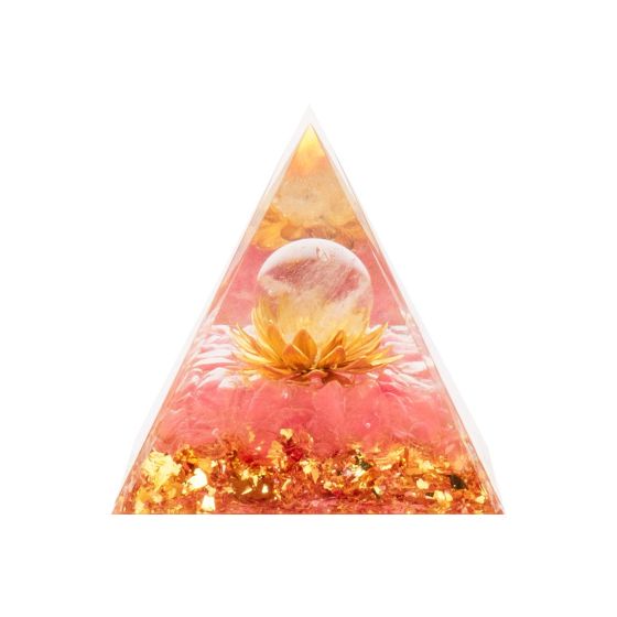 BILP-A003 - Pyramide Orgonite de protection en résine et pierre naturelle - cristal de roche - quartz rose - 6x6 -