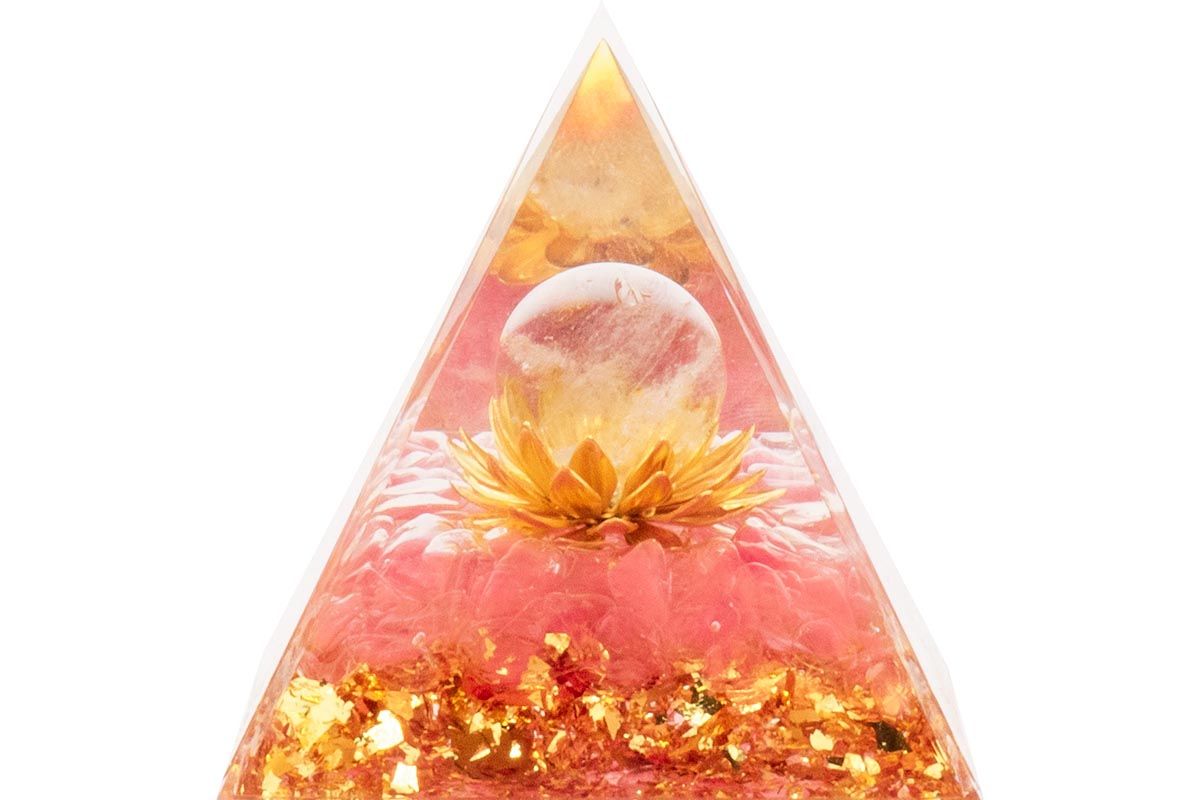 Pyramide Orgonite de protection en résine et pierre naturelle - cristal de roche - quartz rose - 6x6