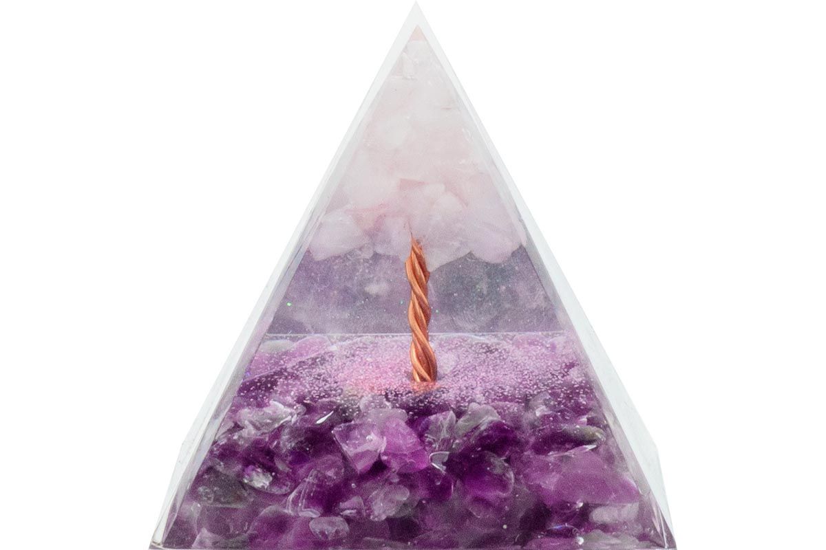 Pyramide Orgonite de protection en résine et pierre naturelle - améthyste - quartz rose - 6x6cm