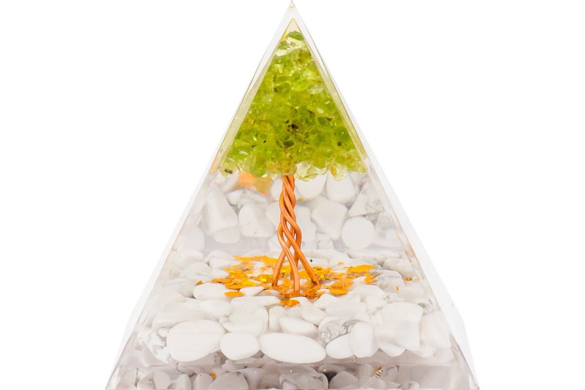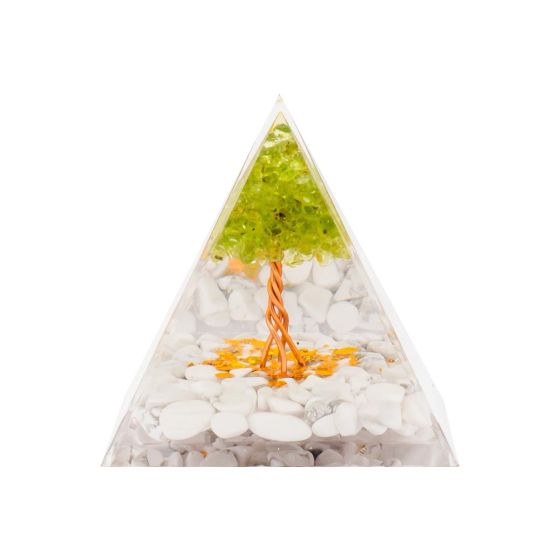 Pyramide Orgonite de protection en résine et pierre naturelle - quartz vert - howlite blanche - 6x6c