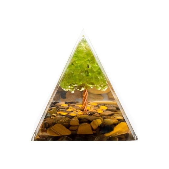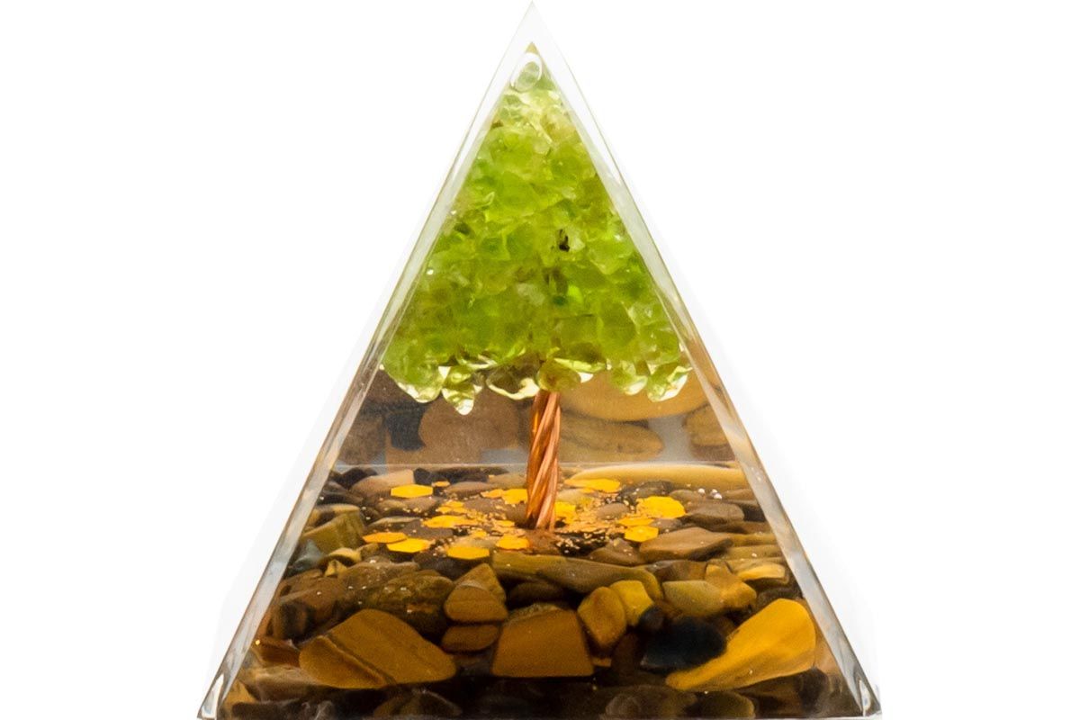 Pyramide Orgonite de protection en résine et pierre naturelle - œil de tigre - quartz vert - 5x5cm