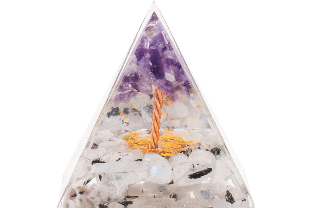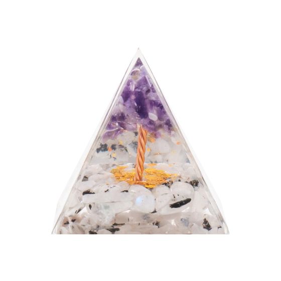 Pyramide Orgonite de protection en résine et pierre naturelle - quartz tourmaliné - améthyste - 5x5c