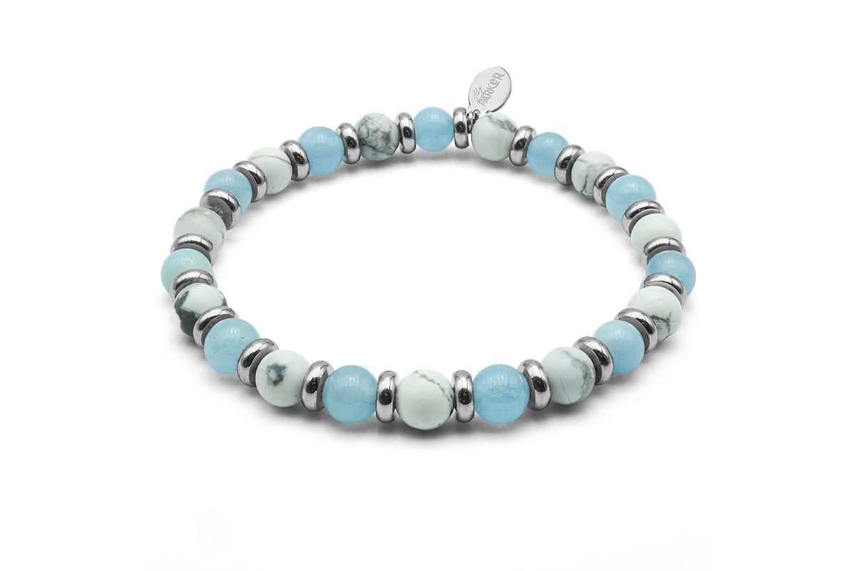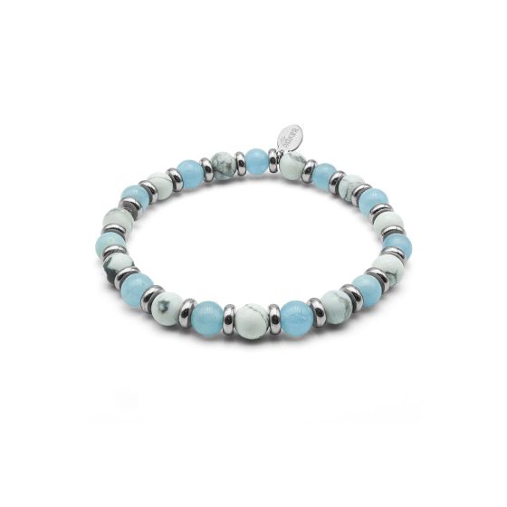 Bracelet lithothérapie *Zen Attitude* - Aigue Marine - Howlite blanche - 18-18,5cm