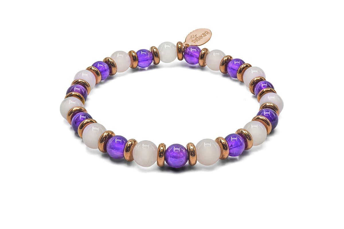 Bracelet lithothérapie *Bonne Nuit* - Améthyste - Quartz Rose - 18-18,5cm