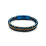 BISTEB315 - Bracelet acier PVD bleu - corde orange - 21,5+1,5cm -
