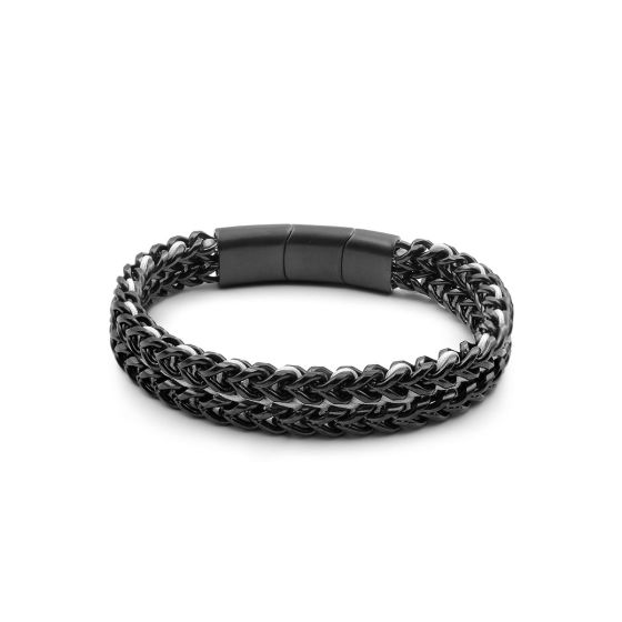BISTEB317 - Bracelet acier PVD noir - corde blanche - 20,5+1,5cm -