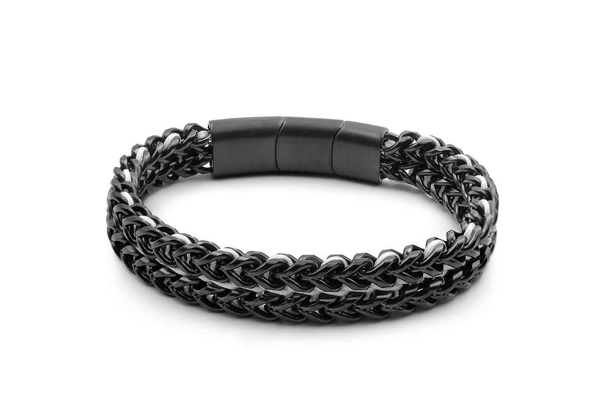 Bracelet acier PVD noir - corde blanche - 20,5+1,5cm