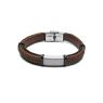 BIWSLB007 - Bracelet en acier - cuir italien marron et cordon tressé marron -