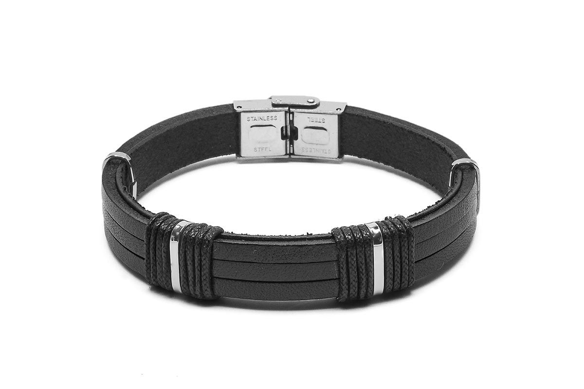 BIWSLB009 - Bracelet en acier - cuir italien noir et cordon noir -