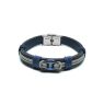 BIWSLB015 - Bracelet en acier PVD bleu - cuir italien - bleu foncé - grain de café - cordon beige -