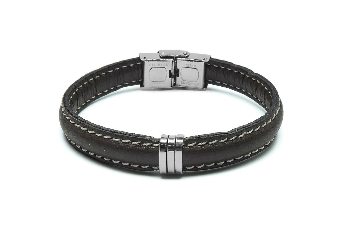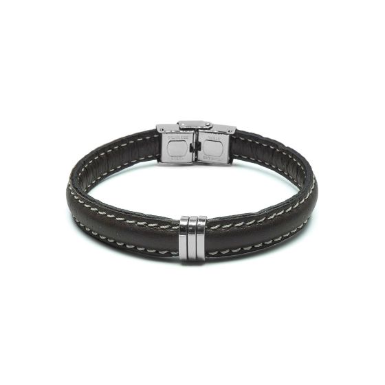 BIWSLB016 - Bracelet en acier - cuir italien marron -