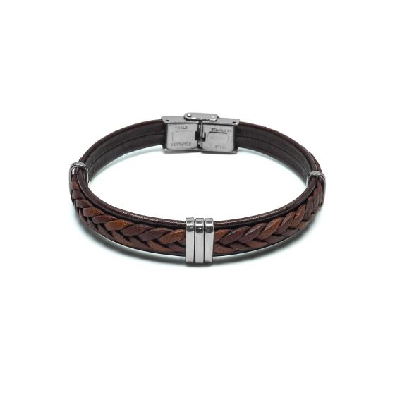 BIWSLB027 - Bracelet en acier - cuir italien tressé marron -