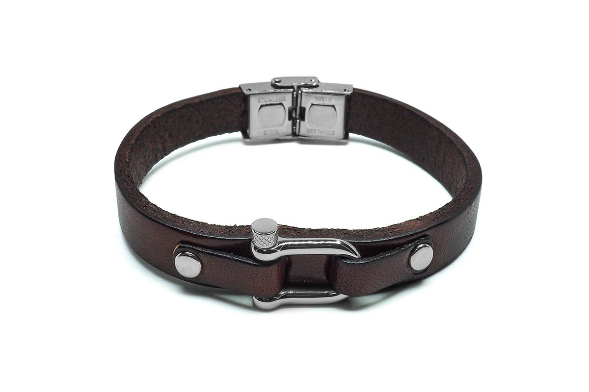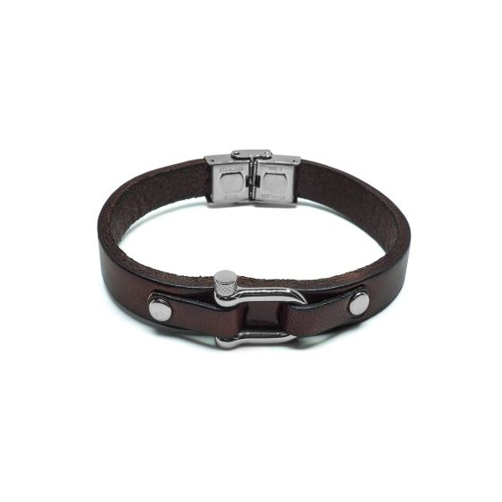 BIWSLB030 - Bracelet en acier - cuir italien marron - manille -