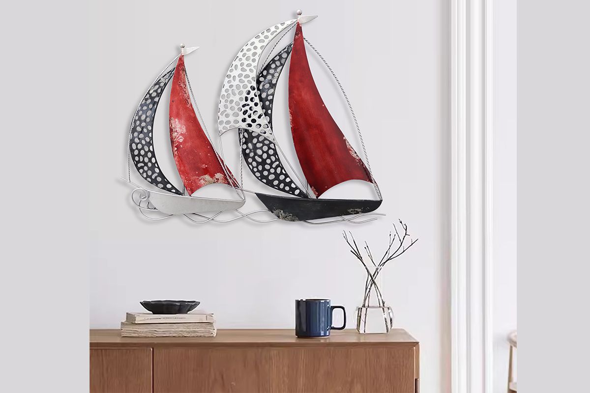 The BEAUX-ARTS collection presents a wide choice of wall decorations. These two sailboats, with their inflated metal sails, add a touch of movement to your wall decor. The red, black and grey colours blend into a modern setting.