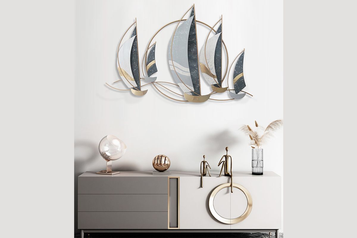 The BEAUX-ARTS collection presents a wide choice of wall decorations. This series of conquering sailing ships is set with a gold sun. Placed in the centre of a wall, in a room or entrance hall, this item will plunge your interior into a modern marine universe.