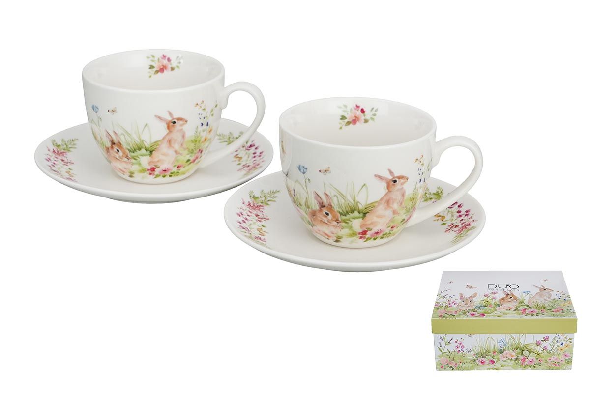 DU0120 - SET OF 2 CUPS&SAUCERS LAPIN - ANIMAL