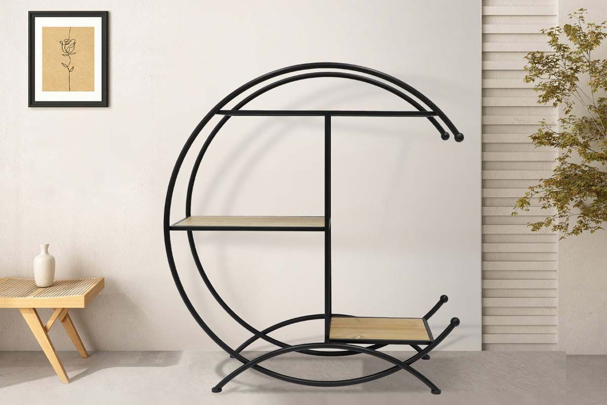ED1012 - METAL/WOOD SHELF HALF CIRCLE - ART DE FER