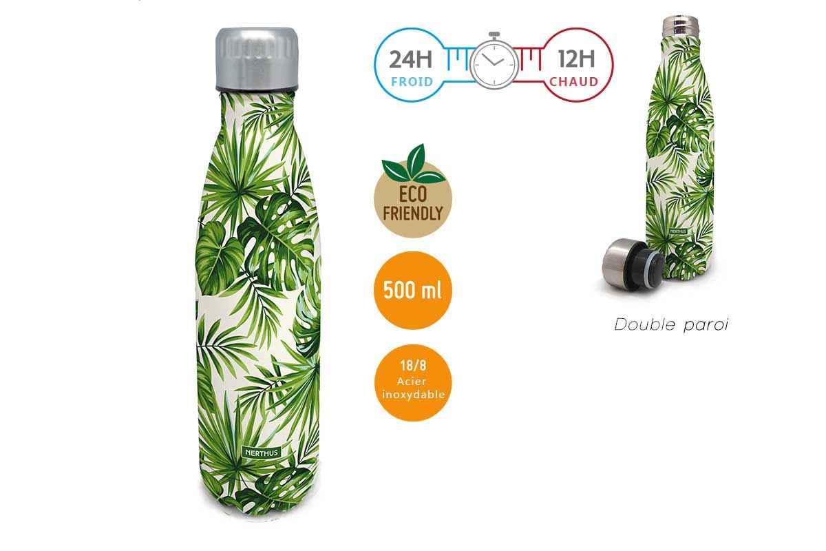FIH510 - BOUTEILLE INOX 500ML DOUBLE PAROI DECOR PALMES - NERTHUS