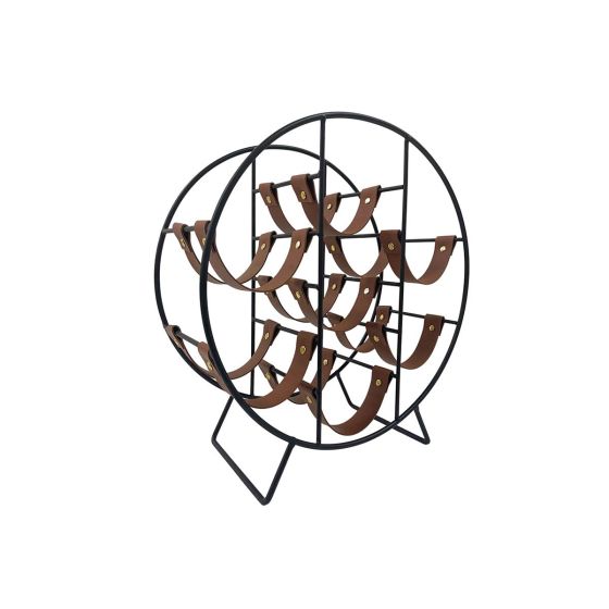 MA3809 - WINE RACK METAL/PU LEATHER ROUND SHAPE 7 BOTTLES - PREMIUM
