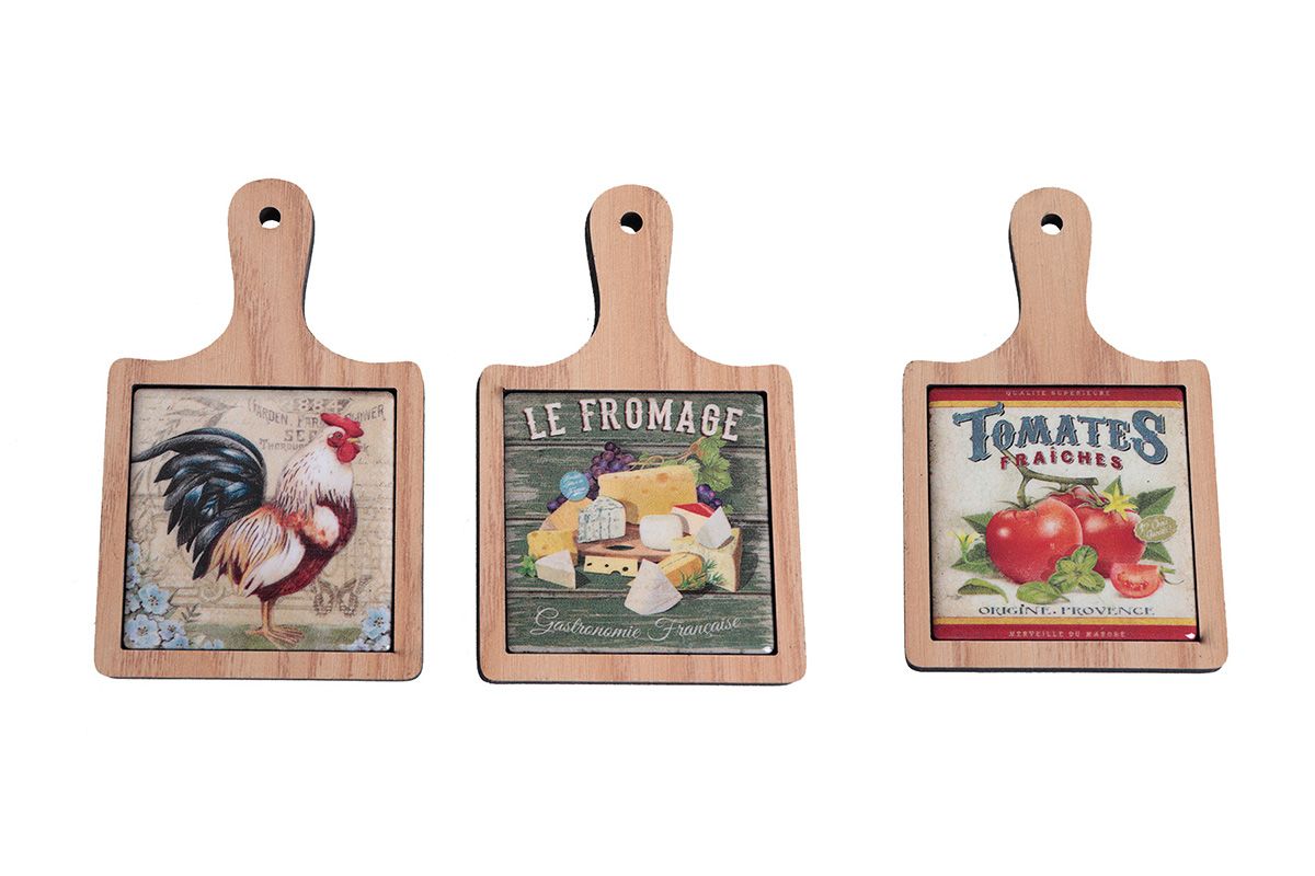 Find our kitchen items to equip the dining area and to offer original items. This set of 6 matching magnet coasters adopts vintage style in its decorations. Made from bamboo and glass, place these magnets on the fridge and give your home a country feel. They're also the ideal souvenir gift.