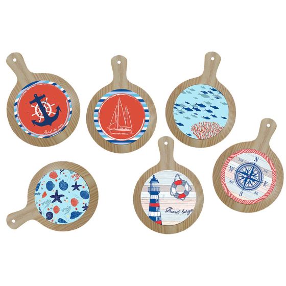 These round marine trivets with handles, decorated with 6 unique marine designs created by SOCADIS, perfectly combine originality and tradition. Ideal for seaside shops, they make an excellent gift choice and add an elegant touch to any table. To be paired with coasters, trays, and appetizer trays from the same collection, they help create a refined maritime ambiance. Their practical shape with a handle makes them easy to use daily to protect tables from hot dishes. These trivets are essential for fans of decor inspired by the marine universe.