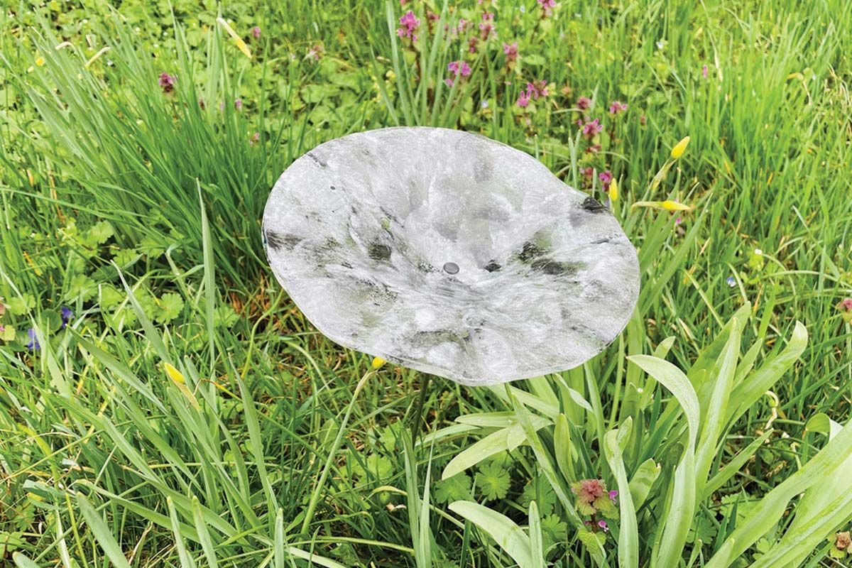 STEM GLASS FLOWER IN/OUTSIDE 18CM DIAM. GREY/BLACK