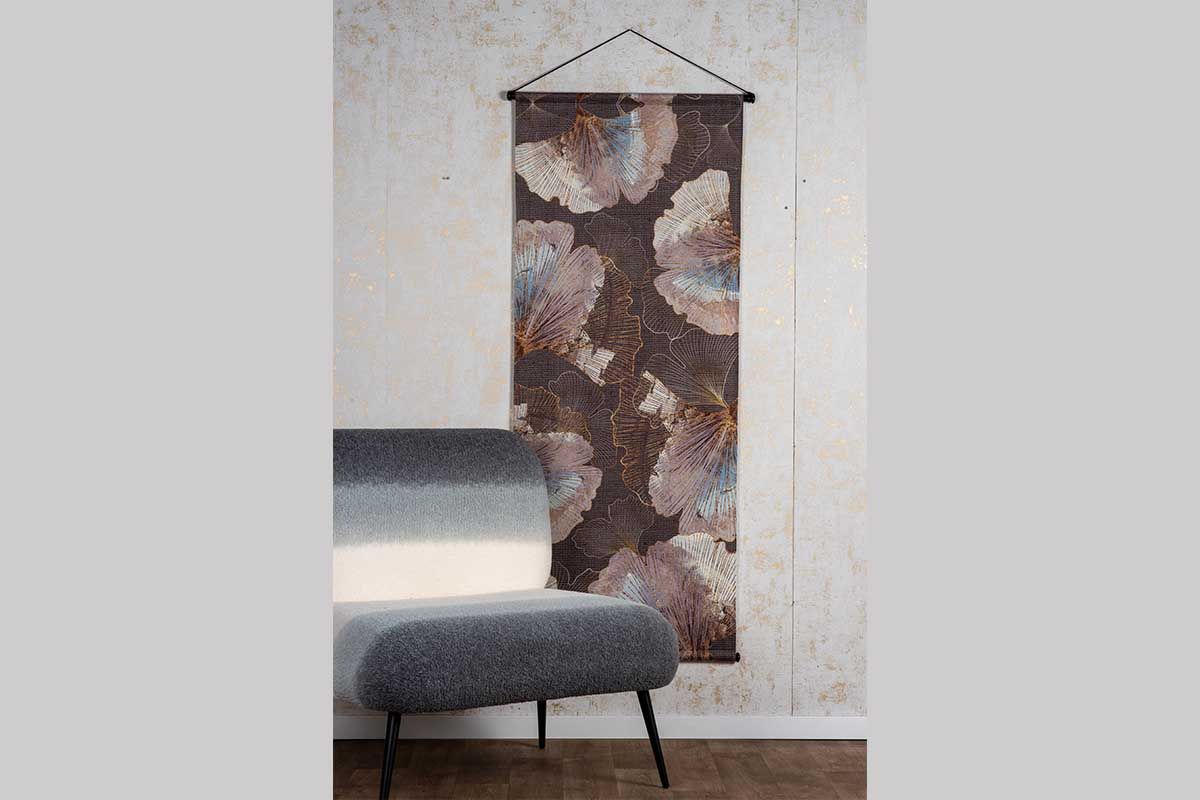 La collection GALLERY est un ensemble de décorations murales qui sont de véritables œuvres d'art. Cette nouvelle série de toiles kakémono habille votre mur en toute légèreté et douceur avec son tissu en velours intense et ses tringles en métal noir. Cette toile florale représente des ginko, en format rectangulaire afin de donner une impression de hauteur. Sa couleur est tendance et moderne afin de se placer dans tout intérieur. Elle peut se placer dans un salon afin d'être exposée telle une œuvre d'art dans un musée.